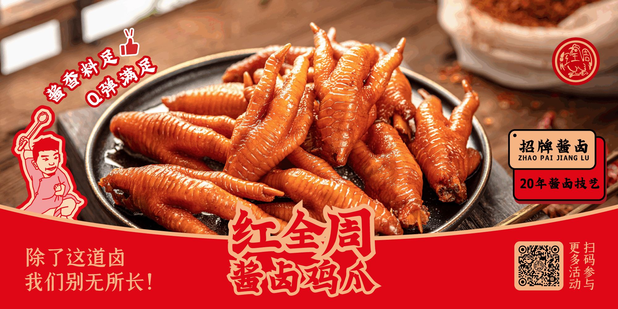 紅全周品牌創立于2012年,其生產總部坐落在以“紅全周雞爪”聞名的福建泉州市南安洪瀨鎮,經張福來師傅多年研制而成的獨家秘方,獨特的鹵制工藝,以“鮮、香、韌、辣”的特點,贏得廣大食客的交口稱贊。紅全周繼承中華美食傳統,堅持以“細微處見風范,毫厘間定乾坤”的服務準則,遵循現代健康飲食理念,精選上等食材,致力為消費者提供安全、健康的美食新體驗。